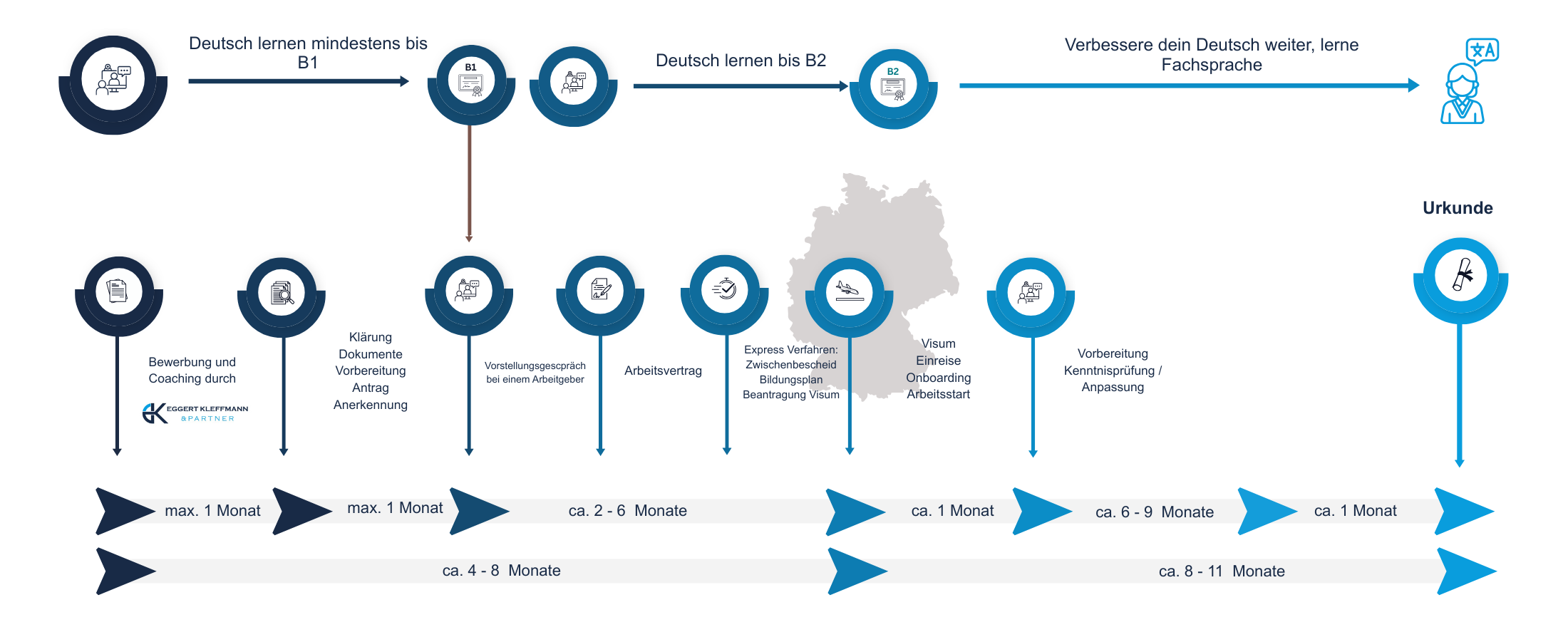 Unser Ansatz soll sicherstellen, dass Du nicht nur sprachlich, sondern auch kulturell und fachlich gut auf eine schnelle Integration in Deutschland vorbereitet bist.